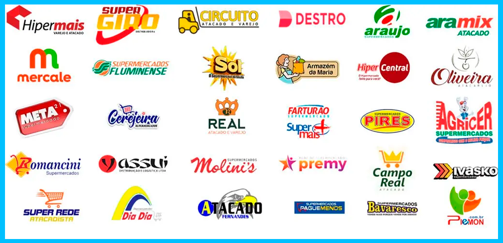Nossa atuação inclui redes como Hipermais, Super Giro, Circuito Atacado e Varejo, Destro, Lar, Quadri, Paraná Araújo, Aramix, Supermercados Fluminense entre outras marcas expressivas em suas regiões.